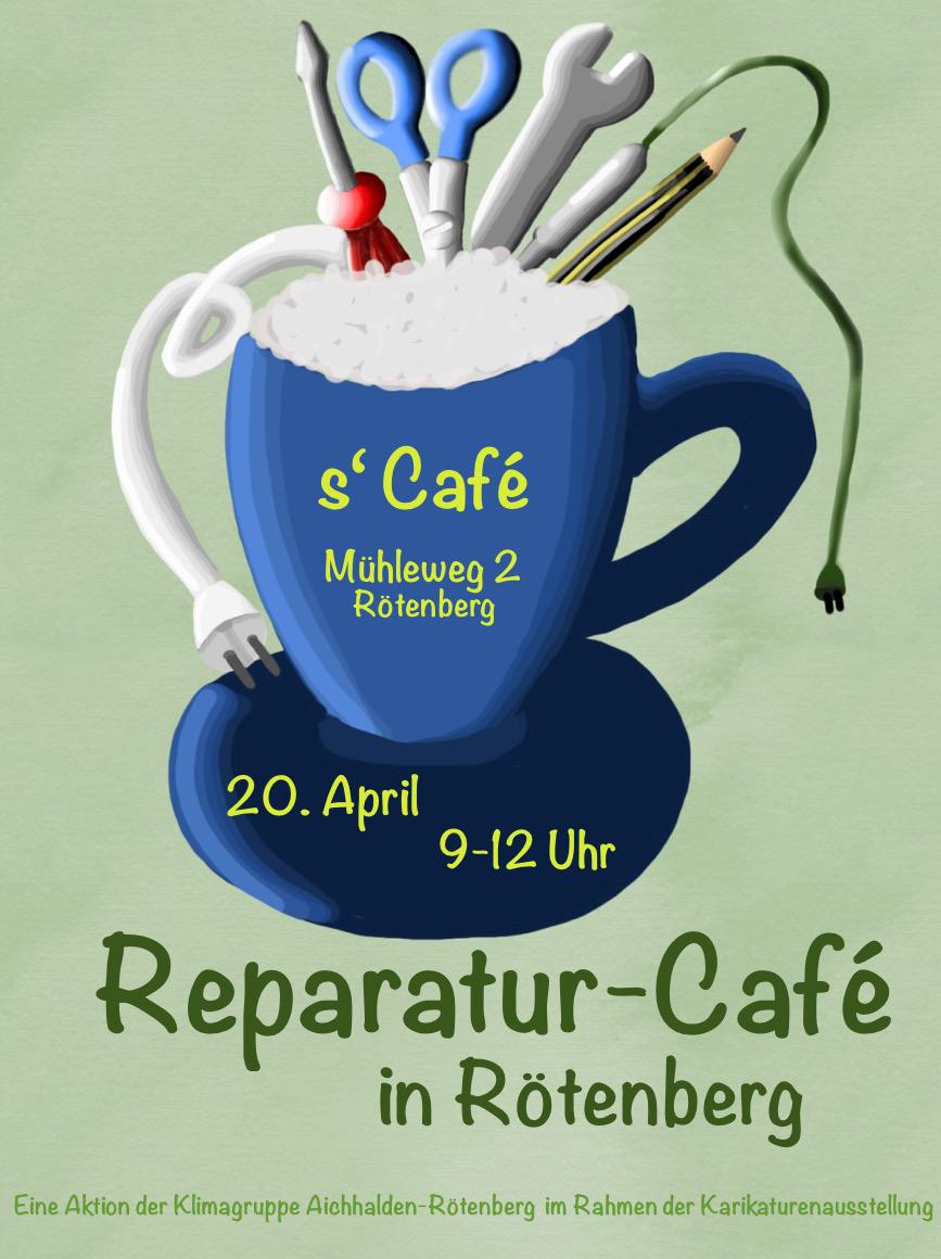 Veranstaltungsflyer REPARATURCAFÉDie Klimagruppe Aichhalden (Aktiv für die Umwelt) lädt ein, kaputte Dinge wieder zum Laufen zu bringen. Das Reparatur-Café schafft Nachhaltigkeit, weil viele Geräte noch ein wenig länger laufen, wenn man sie wieder instand setzt.