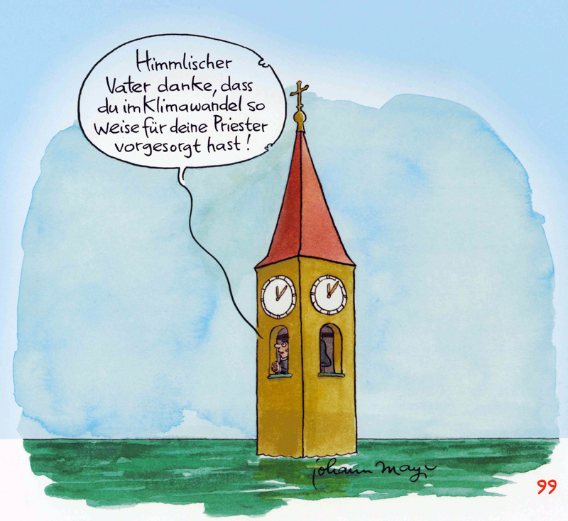 Die ER*Schöpfung unserer Welt ist sichtbar und erfahrbar. Gottes Schöpfung leidet unter den Veränderungen der klimatischen Bedingungen. Die Anpassungs- und Veränderungsbereitschaft der Krone der Schöpfung, des Menschen, ist gefragt. Ein ernstes Thema muss man ernst angehen. Aber ohne Humor geht es nicht! Denn als Christen geben wir die Welt nie verloren. Sie ist und bleibt gerettet. Aber wir stellen uns unserer Verantwortung und nehmen auch die eigenen Sünden in den Blick. Mit Humor – also nie bierernst, sondern feucht fröhlich – laden die Künstler*innen der Karikaturenausstellung dazu ein, dass einem das Lachen im Halse stecken bleibt und die Botschaft zur Veränderung dennoch eine hoffnungsvolle Herausforderung bleibt. Im Rahmen einer Matinee tragen Musik, Wort und Bild zu einer Einstimmung bei, die tiefen Sinn hat. Die musikalische Gestaltung wird vom Ehepaar Steffi & Peter Flaig übernommen.