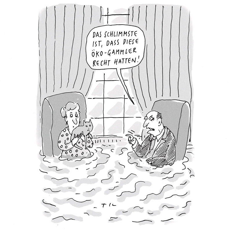 In Karikaturen zu Themen wie Lebensstil, Konsum, Klimawandel und Gerechtigkeit wagen 40 Karikaturistinnen und Karikaturisten einen überraschend anderen Blick auf die Herausforderungen unserer Zeit.