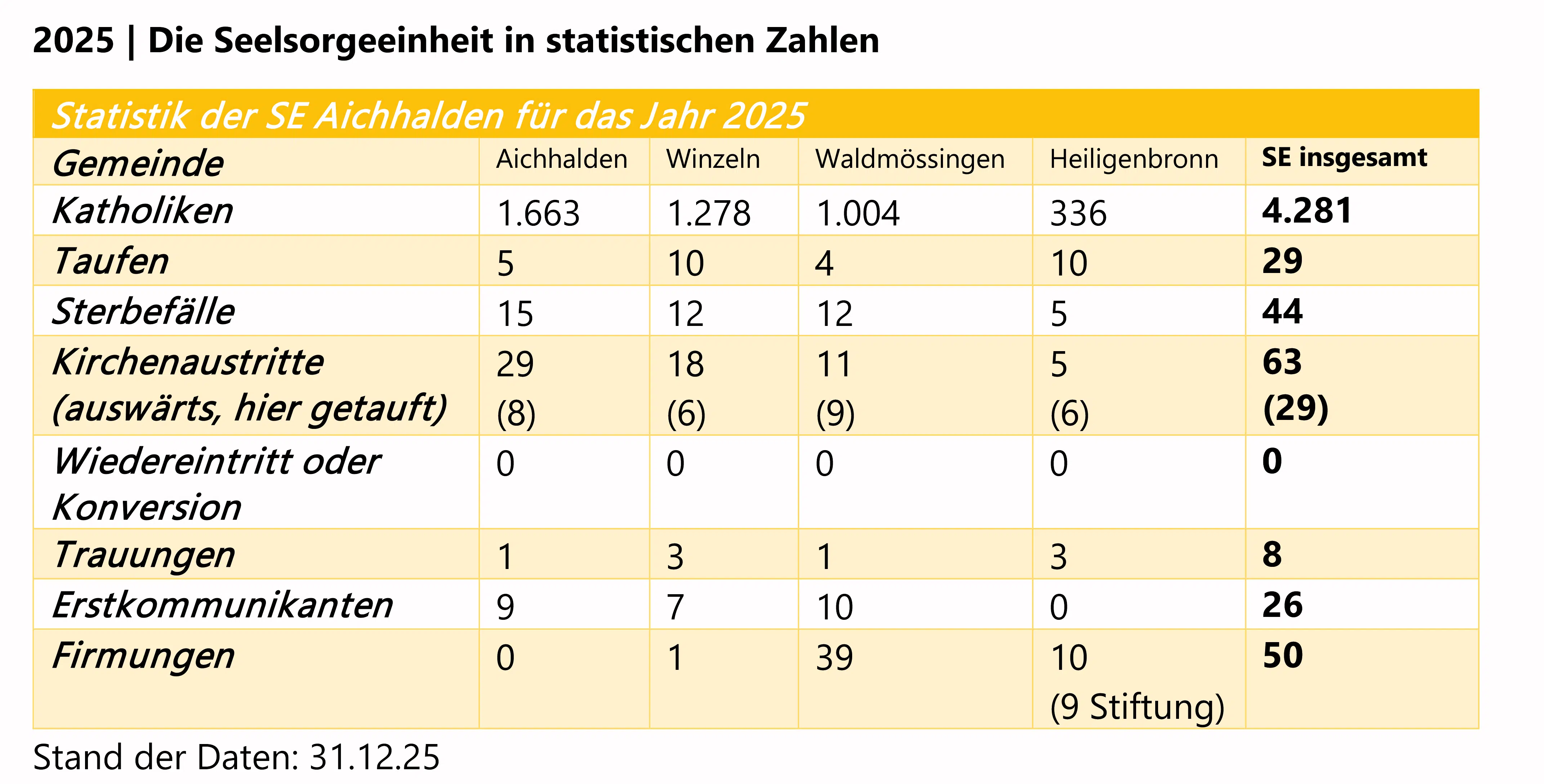 2025 | Die Seelsorgeeinheit in statistischen Zahlen