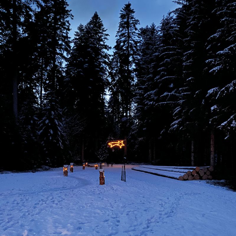 Nachts können Sie den weihnachtlich beleuchteten Wegen hin zur Krippe folgen. Sie starten am Parkplatz des Flugplatzes Winzeln und werden vom Licht der Weihnacht durch den dunklen Wald begleitet. Ein Geschenk für uns alle, die wir daheimbleiben müssen! Eine Wegbeschreibung finden Sie HIER.